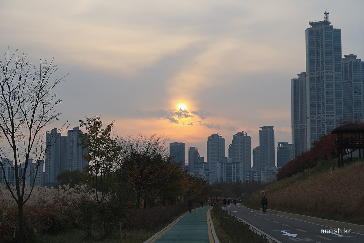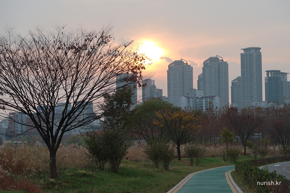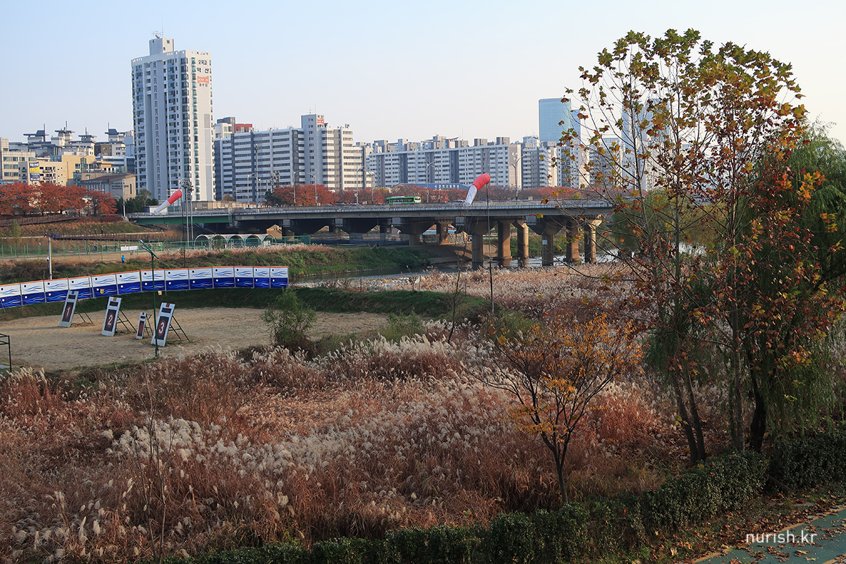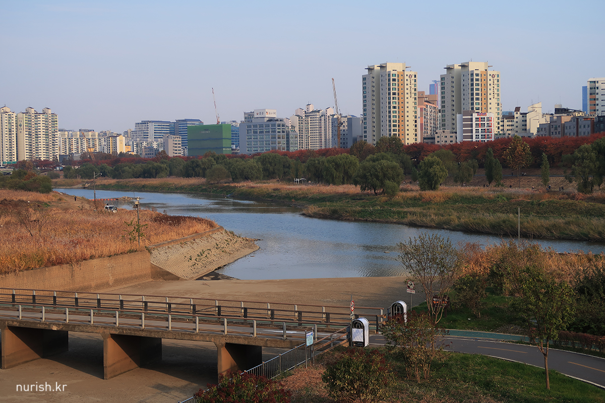 열두 시쯤 느지막히 일어나 전날 천안에서 사 온 스콘과 마늘바게트에 얼그레이를 곁들여 끼니를 떼우고 바람을 쐬러 길을 나섰다. 단풍놀이도 할 겸 산책할 코스는 안양천 안양천 양천둘레길 오목교-양화교 구간과 목마공원.