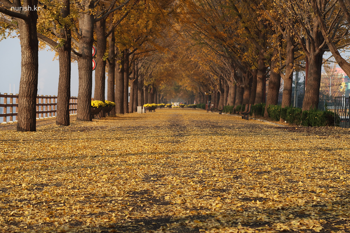 지중해마을에서 10분 정도 차 타고 가면 나오는 아산 곡교천 은행나무길.
