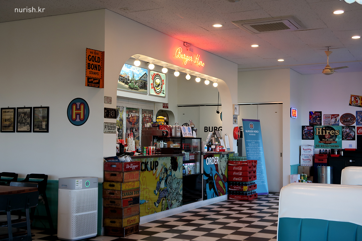 버거히어로가 다시 매장 식사를 재개했다는 소식을 듣고, 하루에 딱 150개만 판다는 햄버거가 너무 궁금해서 토요일 아침 일찍부터 주유소에 들러 기름을 넣고 김포한강로를 달렸다. 차 사고 나서 좀 이상하게 부지런해진 거 같다. 주차장에 여덟 시 59분에 도착했는데, 우리보다 앞서 온 손님이 두 팀 있었다.