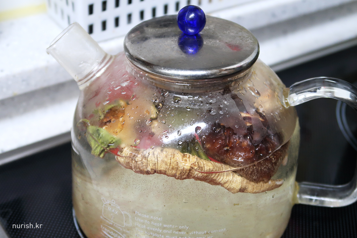 다니는 한의원에서 내 몸에는 더덕이 보약이고, 요즘 고생 중인 비염에는 수세미가 좋다고 알려 주셨다. 자동차 점검 받고 나와서 강화풍물시장에 들렀다가 말린 수세미를 발견해서 더덕과 함께 끓이는 중.