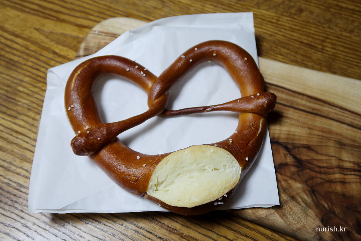 명절 앞둔 단축근무 덕분에 도보 30분 거리인 연희동 폴앤폴리나에 가서 잔뜩 빵쇼핑했다. 일단 브레첼부터.
