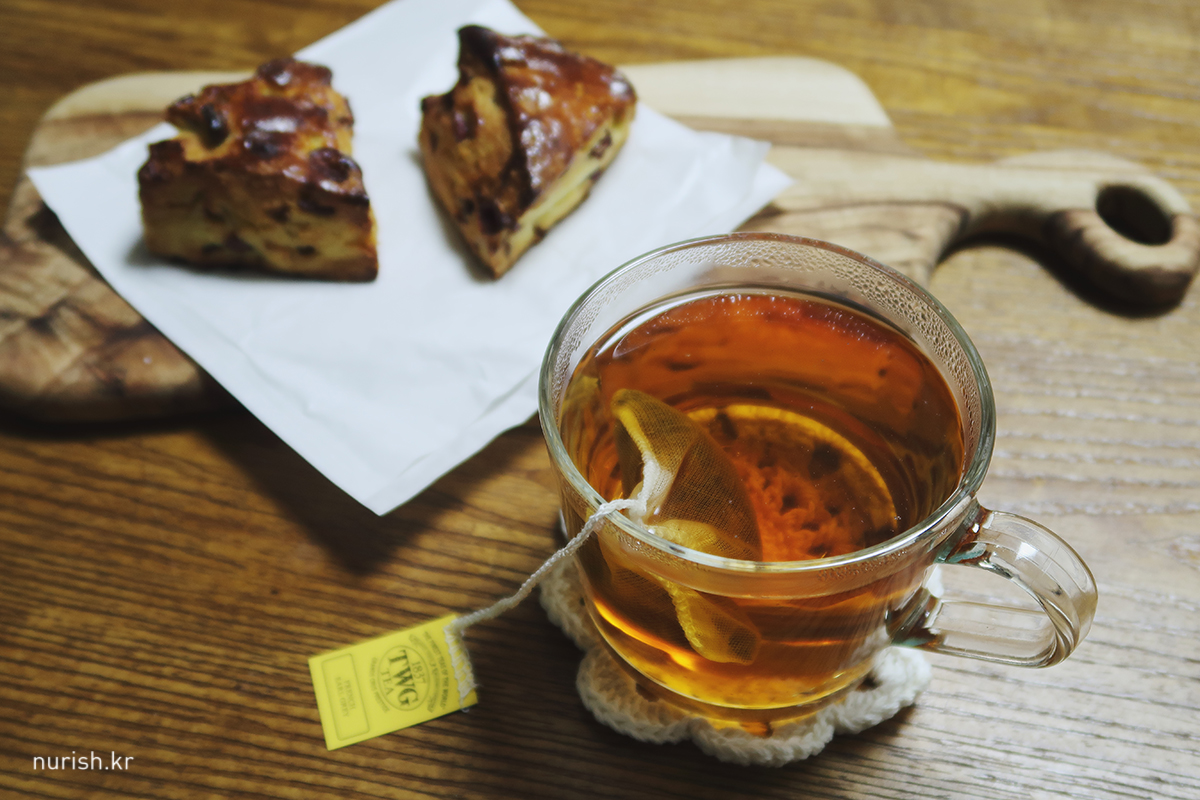 명절 연휴 첫 끼니는 폴앤폴리나에서 사온 크랜베리 스콘과 TWG 프렌치 얼그레이 한 잔.