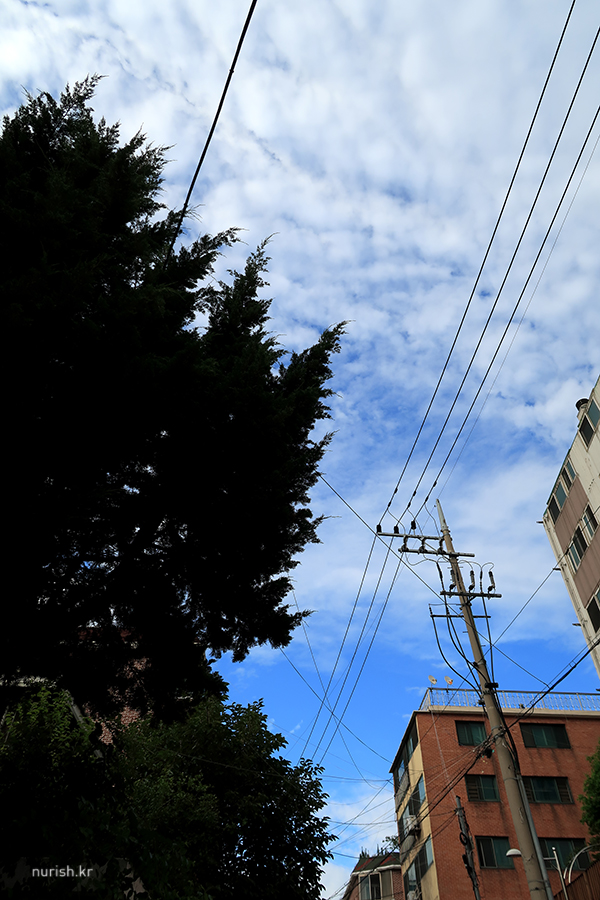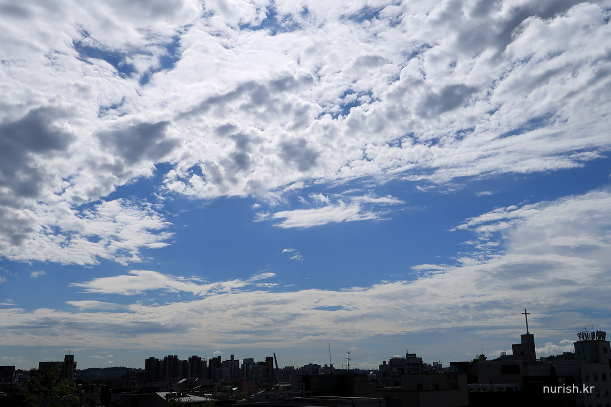 온다는 비는 안 오고 하늘이 아주 예뻤다. 일하다 말고 잠깐 올라가서 찰칵찰칵. 답답한 마음이 뻥 뚫리는 기분이다. 공기가 무척 좋아서인지 북한산과 안산도 선명하게 잘 보인다.