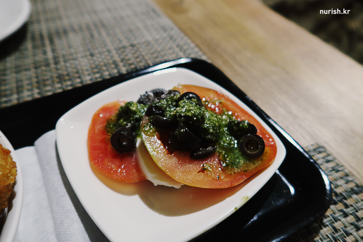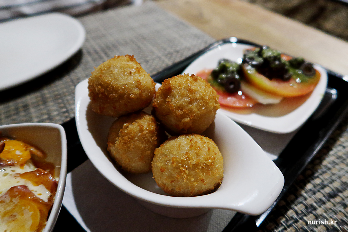 테이블 자리 기다리는 동안 잠시 간단한 타파 즐기는 중