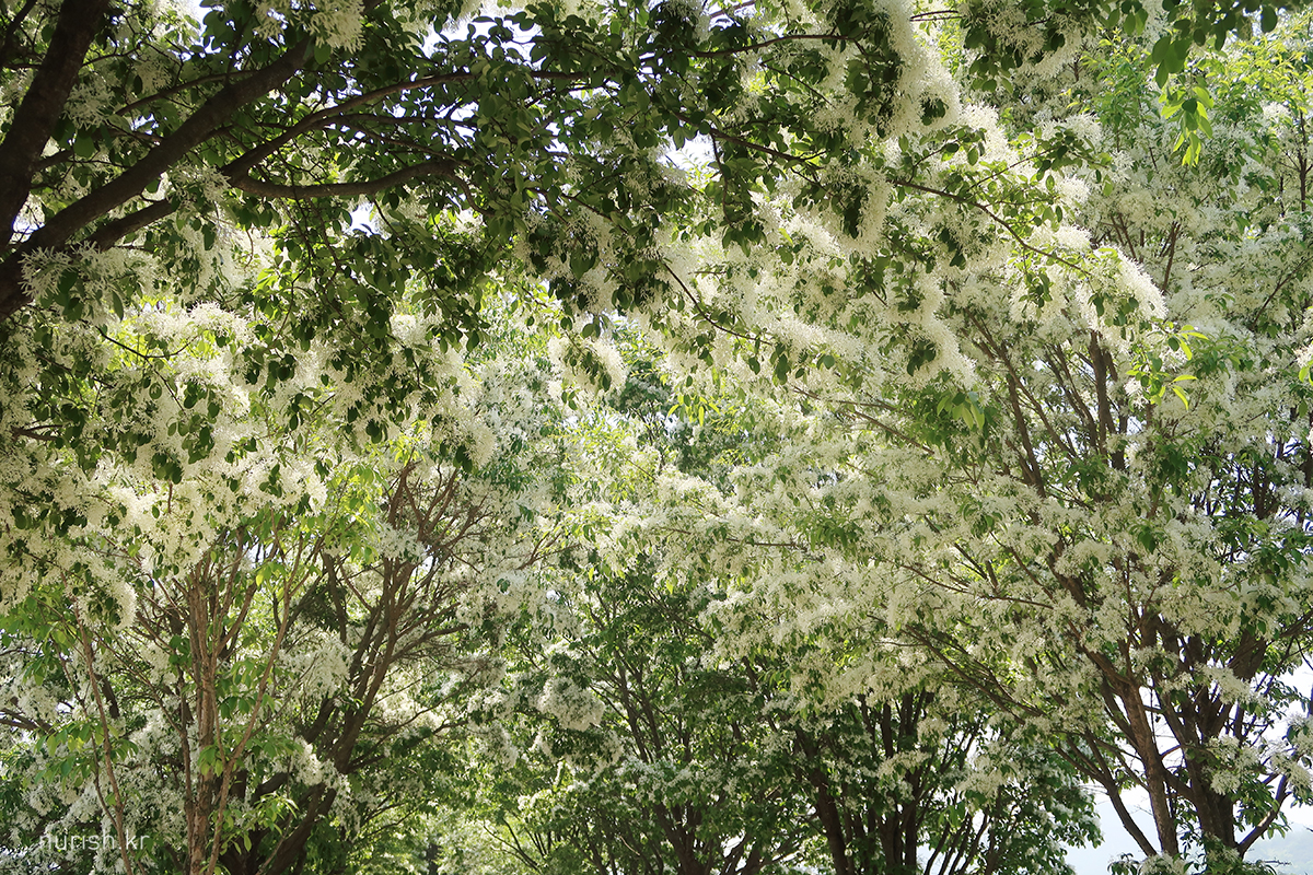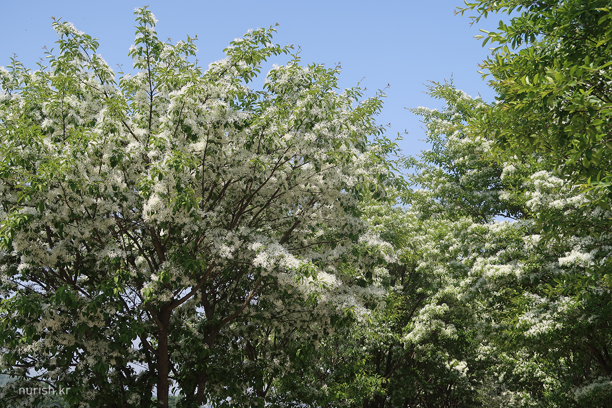 꽃송이가 사발에 소복이 얹힌 흰 쌀밥 같아서 '이밥나무'라고 부르던 게 '이팝나무'가 되었다는 설도 있고, '입하(入夏)' 무렵 꽃이 피기 때문에 '입하목'이라고 부르던 게 '이팝나무'가 되었다는 설이 있다는데, 내 눈에는 어떻게 봐도 샐러드에 뿌려 놓은 간 치즈들 ㅎㅎ 이러나 저러나 참 귀엽다.