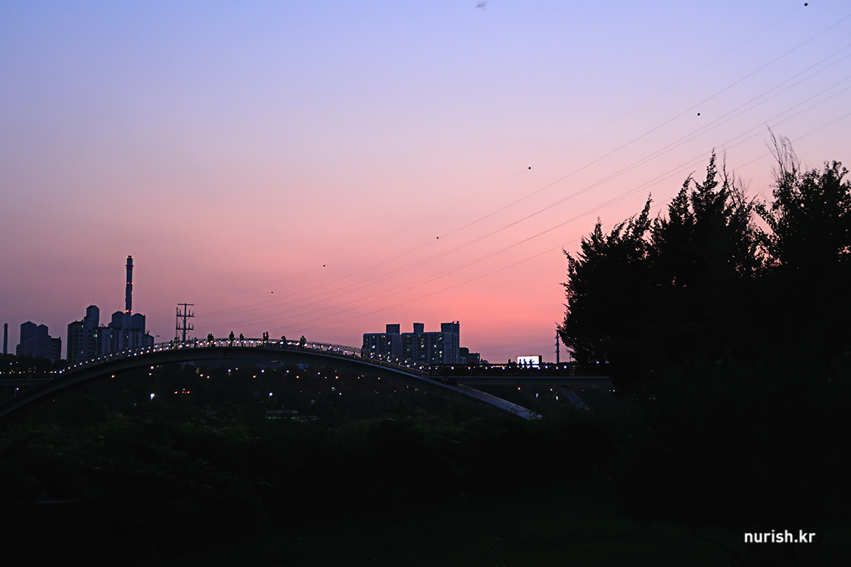 번개는 일찍 끝났고, 배가 너무 불러서 다리를 건넜다. 하늘도 아주 예쁘다.