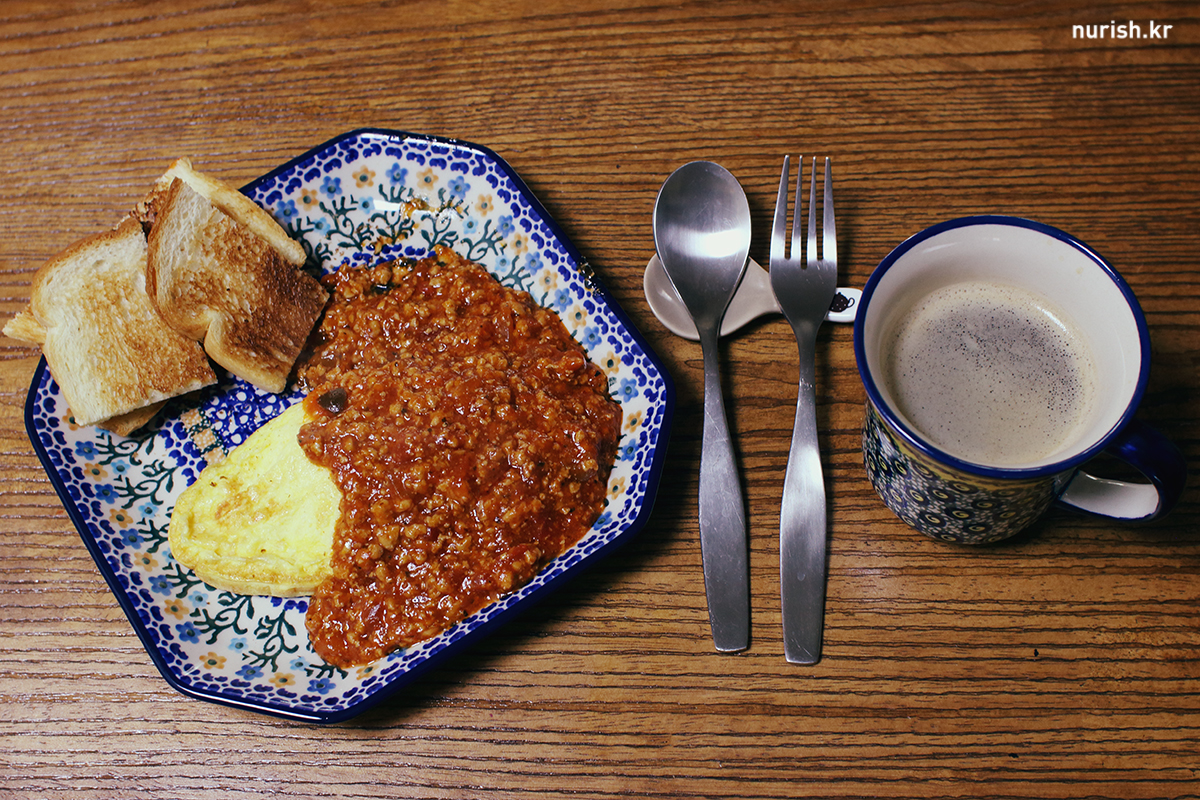 친구에게 카야잼을 선물 받아서 오랜만에 토스트. 속에는 잼, 치즈, 계란 :D