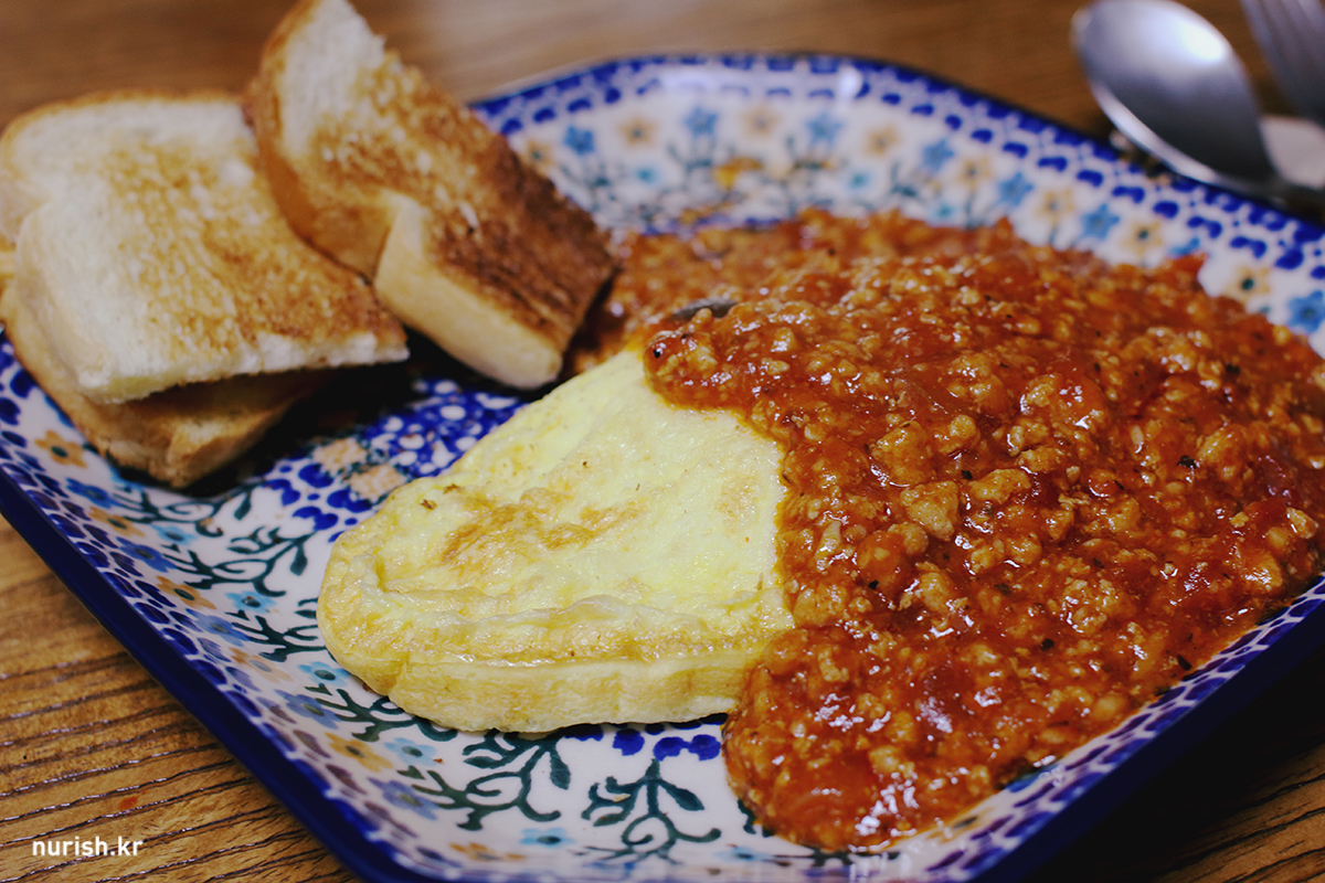 친구에게 카야잼을 선물 받아서 오랜만에 토스트. 속에는 잼, 치즈, 계란 :D
