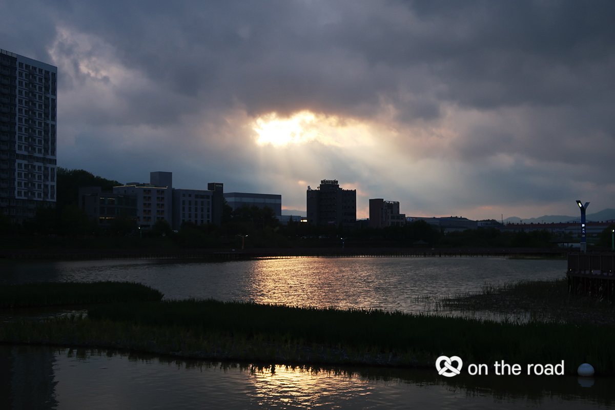 너무 배 불러서 호텔 앞에 있는 저수지 한 바퀴 돌았다.
