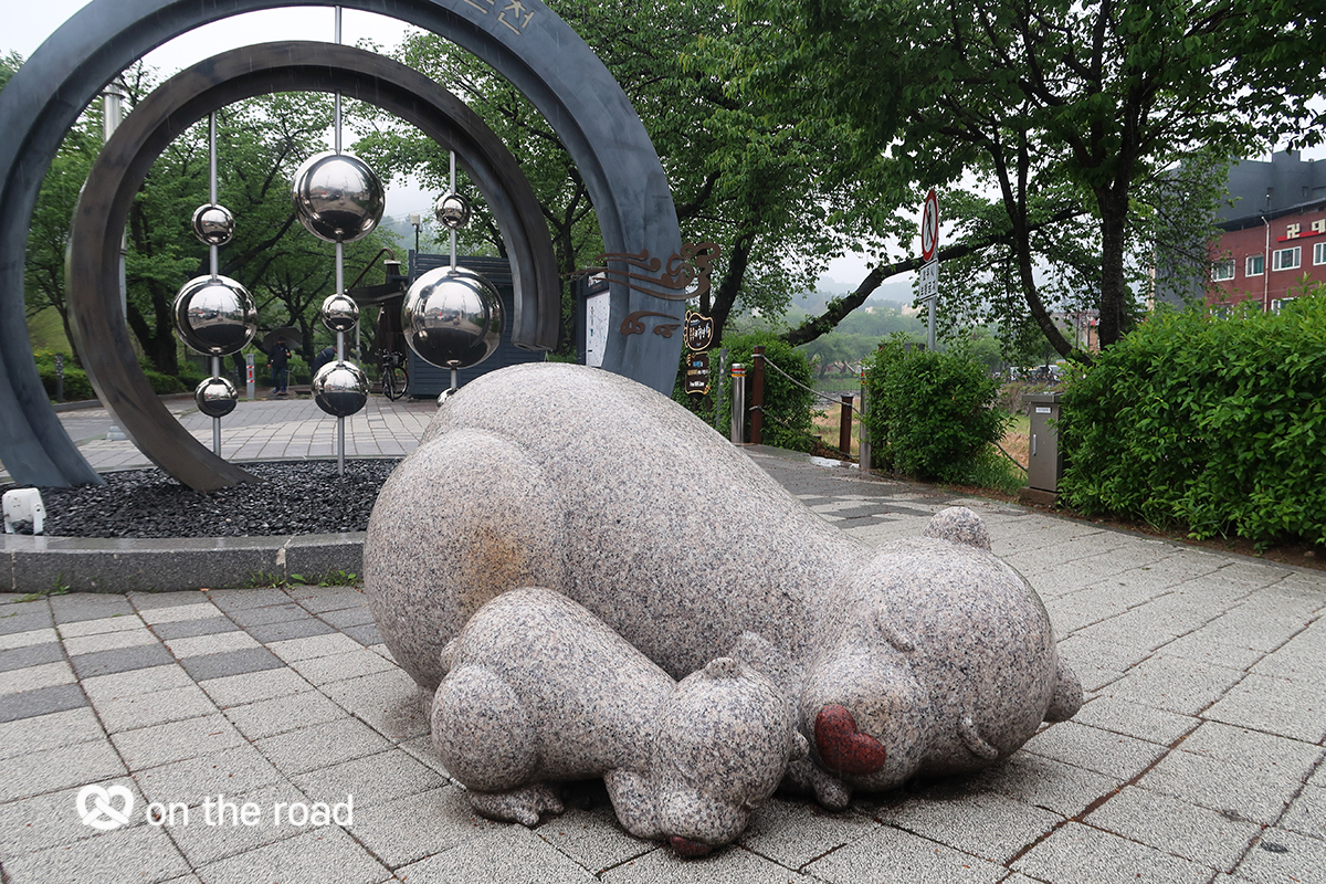 충주호에 위치한 카페 가는 길, 잠깐 들른 충주호 종댕이길안내소 주차장.