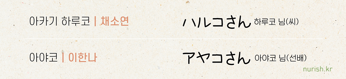 강백호가 SD에서 가장 정중한 호칭으로 부르는 사람은 채소연과 이한나. 번역판에서 강백호는 채소연을 소연이라고 부르고, 이한나는 한나 선배라고 부르지만 원어에서는 백호에게는 극존칭이나 다름없는 'さん(~님, ~씨)'을 붙여서 무척 공손하게 부른다.
