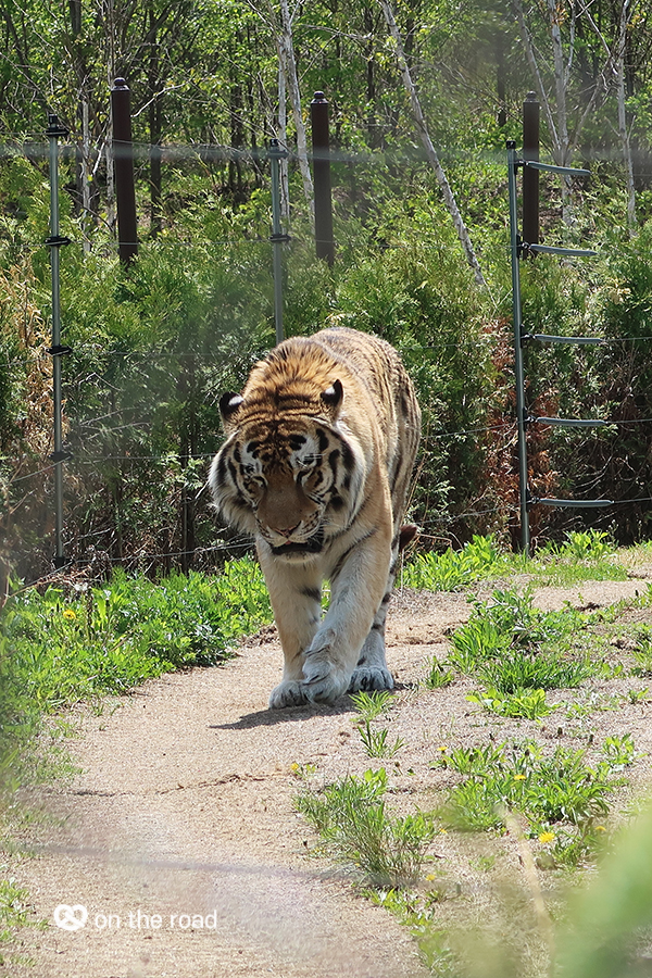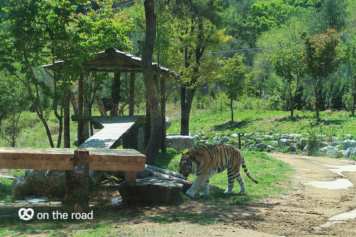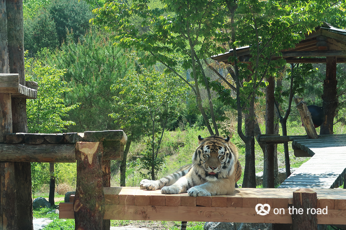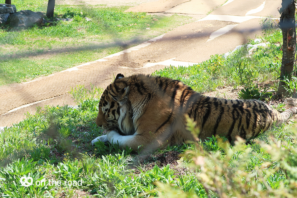 이렇게 가깝다고? 싶을 정도로 호랑이들이 철조망 근처로 잘 온다. 제법 오랜 시간 머물렀는데, 거대한 호랑이들 너무 귀여워서 하루 종일 관찰해도 안 질릴 것 같았다. 다만, 호랑이는 청각이 예민하니 조용히 관람해달라고 써 있건만, 호랑이의 관심을 끌겠다고 소리를 질러대는 어른들이 있어서 눈살이 조금 찌푸려졌다.