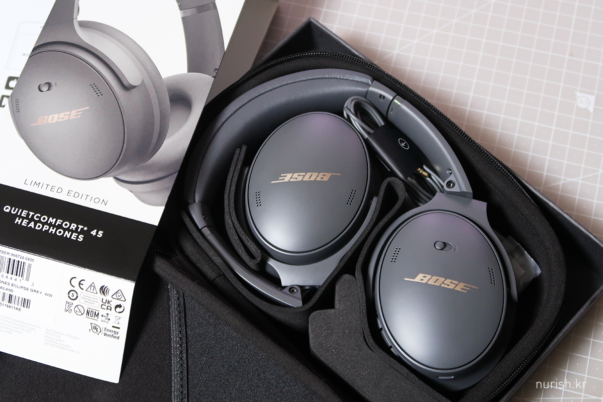 따뜻한 귀마개를 샀다. 보스(Bose)의 QC45. 아이폰에 더 이상 유선 헤드폰(비츠EP)을 꼽지 못하게 된 뒤로 한동안 에어팟으로 살았는데, 얘도 나이를 먹더니 자꾸 꺼지고ㅜㅜ 나도 나이를 먹었더니 오래 꼽고 있다 보면 귀가 아파서ㅜㅜ 음악을 안 들을 수는 없으니 귀 건강을 좀 더 챙기기로 했다. 블랙과 그레이 중에 고민하다가 블랙은 이미 갖고 있는 헤드폰이 블랙이라서 그레이로 골랐다. 화이트도 예뻐 보였지만, 감당할 자신이 없다.ㅜㅜ 게다가 그레이는 한정판이라네. 이클립스 그레이, 색 이름도 예쁜데 실물도 고급지고 마음에 쏙 든다. 확실히 착용감으로 유명한 제품답게 편하고 음질도 마음에 쏙 드는데, 이제 여름이 다가오면 못 쓸 것 같긴 하다. ㅋㅋㅋ 좀만 더 빨리 살걸 그랬네. 노이즈캔슬링 기능은 평소 길에서 들을 때가 많아서 크게 신경 안 쓰긴 했는데(aware 모드 충분), 아침에 출근할 때 버스에서 quiet 모드로 들어보니 신세계긴 했다.