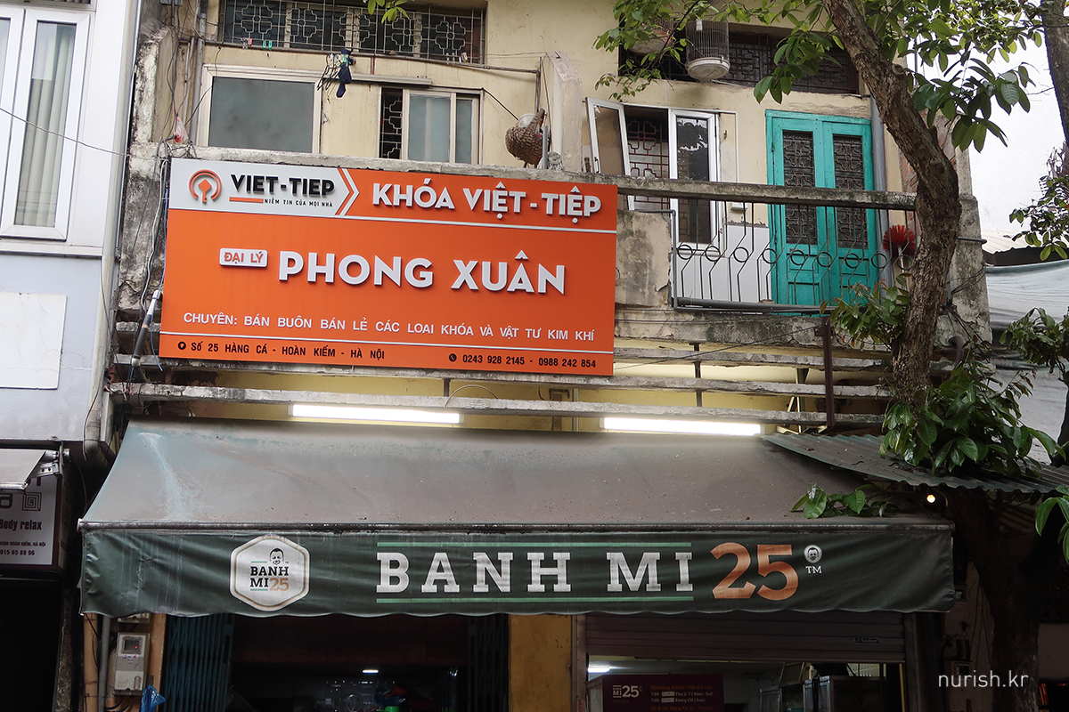 미리 호텔에 예약해 둔 셔틀리무진 타고 공항에서 하노이 시내로 들어와서 체크인한 후 환전한 다음에 근처 반미25에 점심 먹으러 왔다. 주문하고 맞은편 식당 자리에 앉아야 하는 줄 알았는데, 그냥 식당에 자리 잡고 앉아서 직원에게 주문해도 된다.