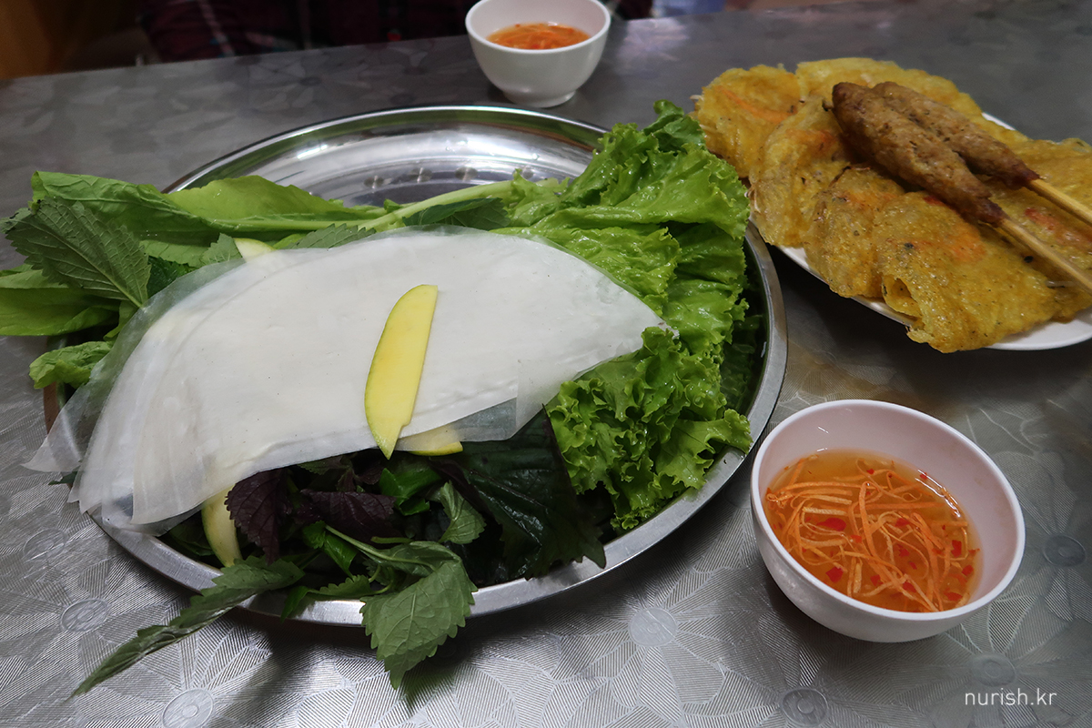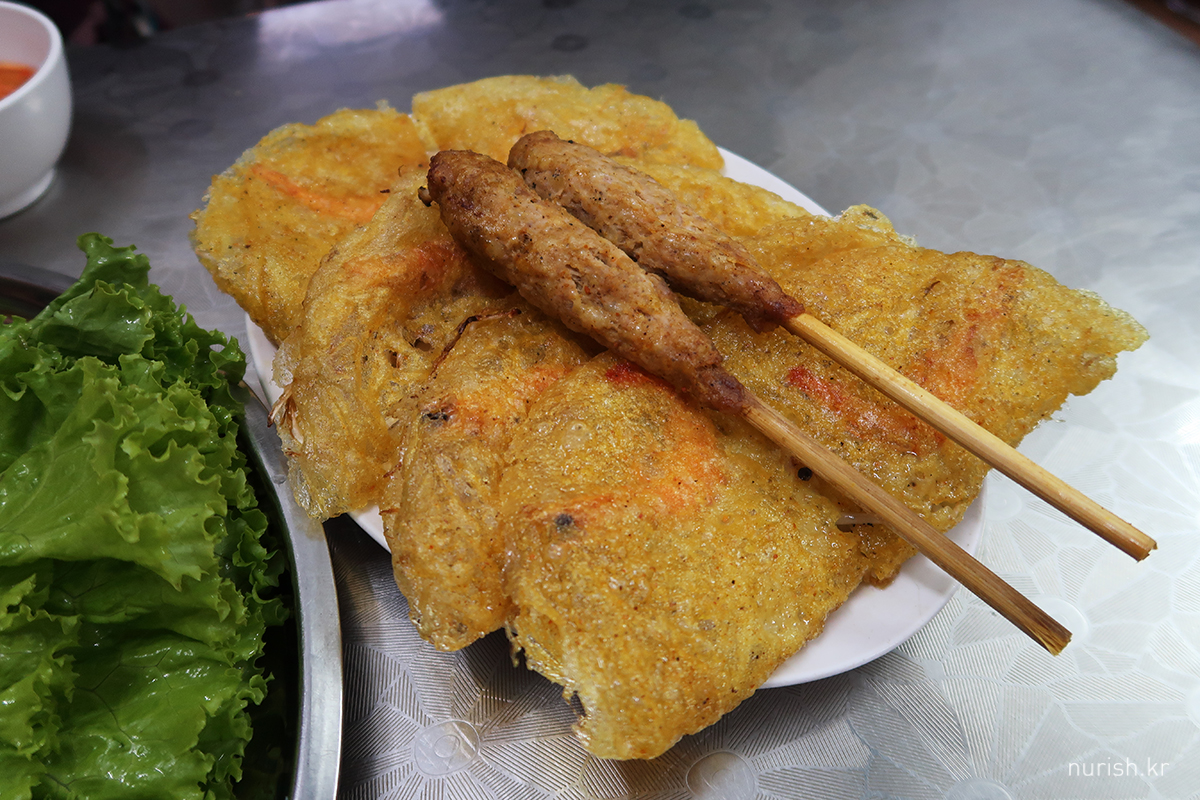 반 쎄오(Bánh Xèo) + 넴 루이(Nem Lụi) 2인 주문. 피곤해서 맥주 마실 생각도 못 했네. ㅋㅋ