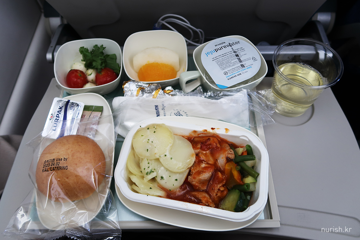 정식(?) 아침 식사는 닭고기 요리와 화이트 와인
