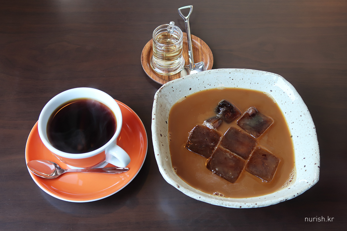드립 커피(볼리비아 게이샤 무나스퀘차이)와 카페오레 아이스