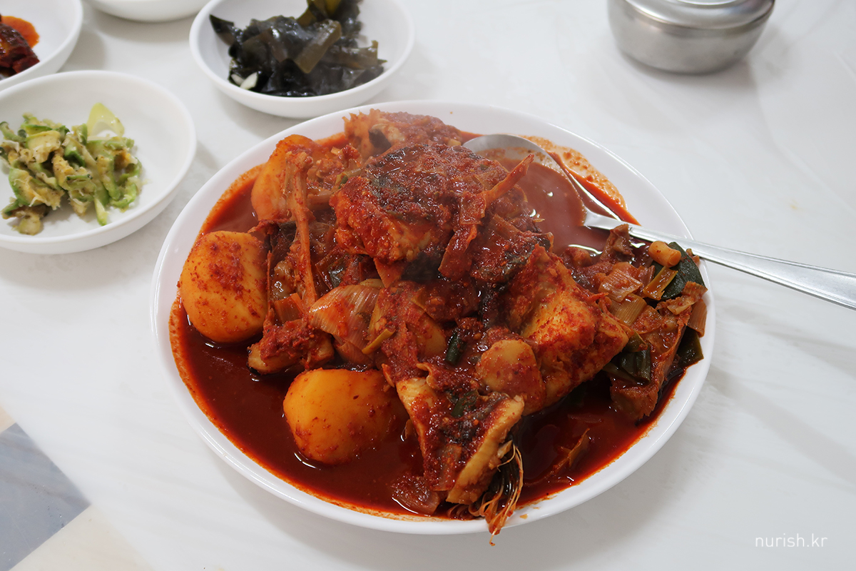 강릉에서는 장치찜을 먹어 봐야 한다고 해서, 점심은 주문진에 있는 월성식당에서 장치찜.