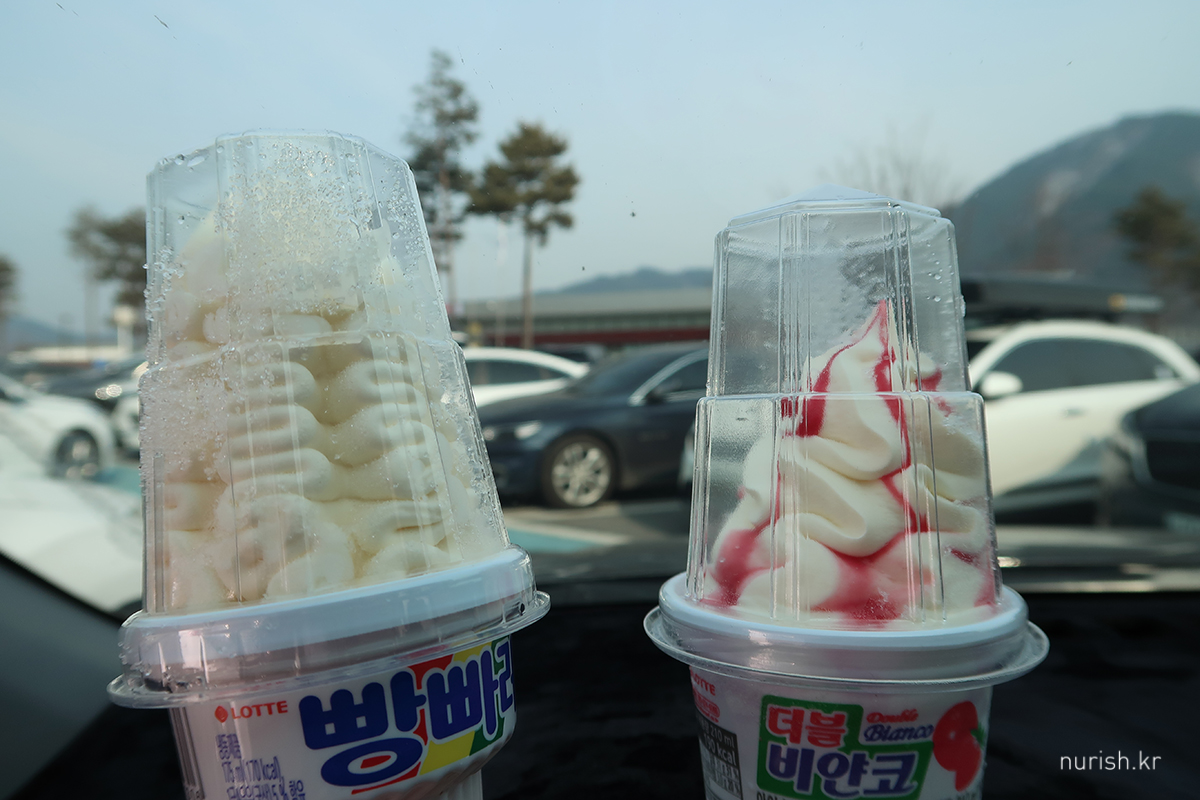너무 졸려서 서울양양고속도로 타자마자 내린천휴게소 들러서 아이스크림 하나씩 먹기