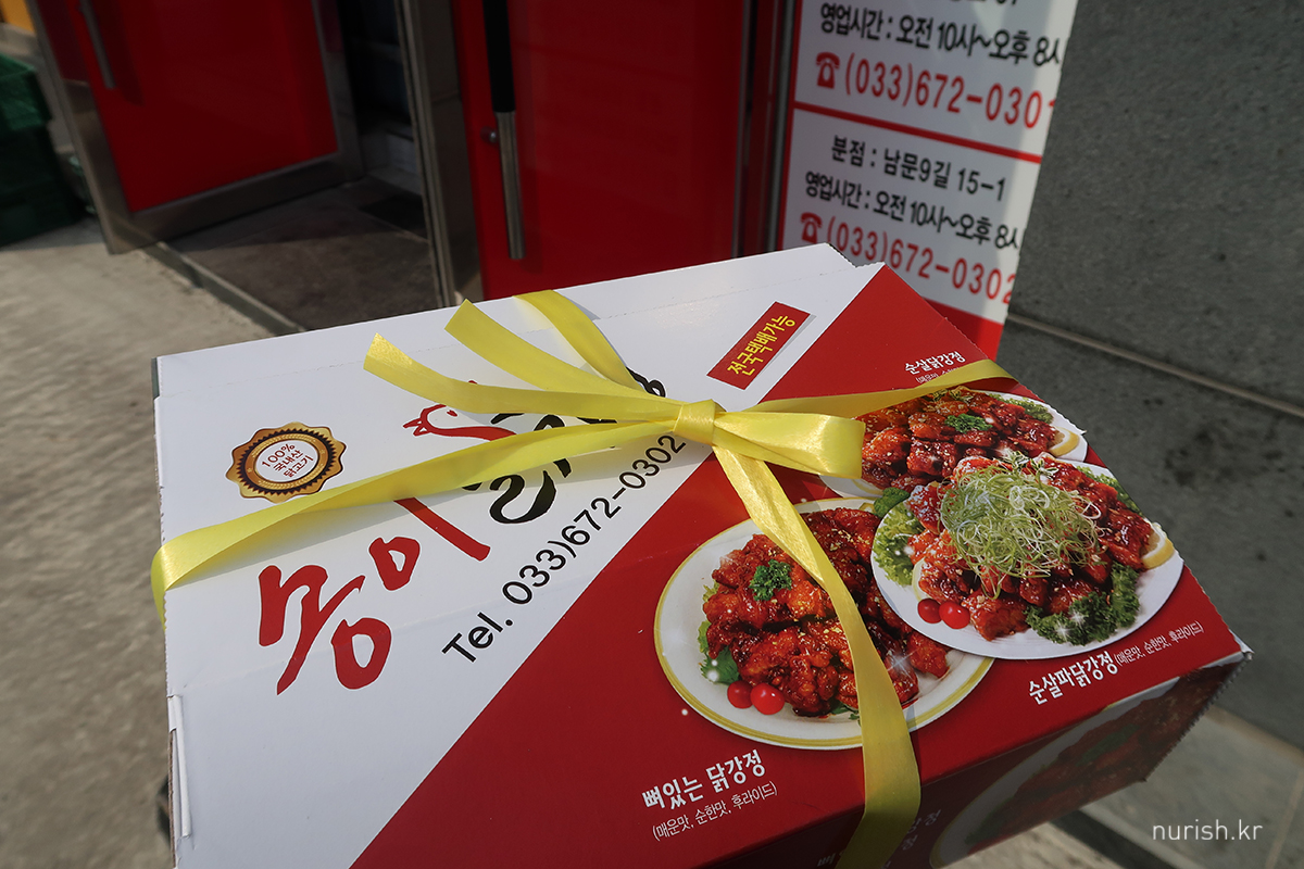 집에 가서 먹을 닭강정 한 상자 사들고