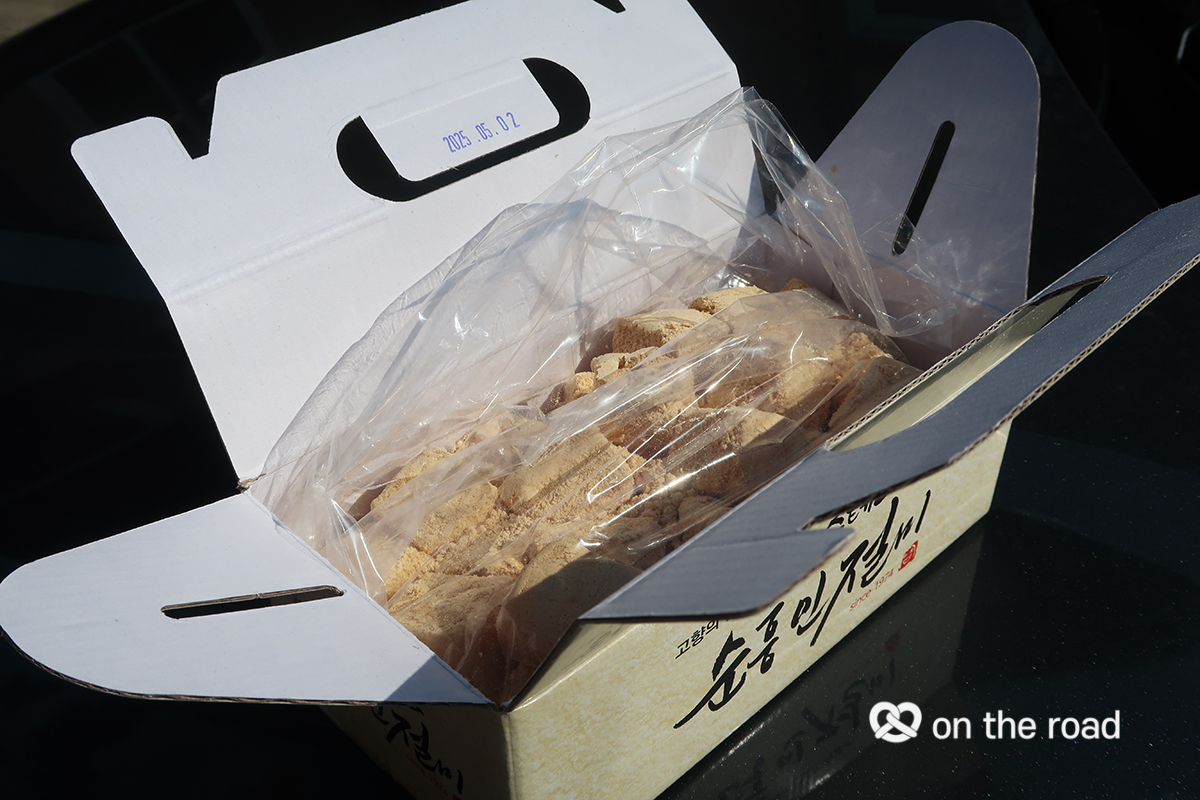영주에서 봉화로 넘어가는 길, 지나가던 순흥면에서 지나치지 못하고 인절미 한 상자 구입했다. 여행하는 사흘 동안 괜찮은 간식이었다.