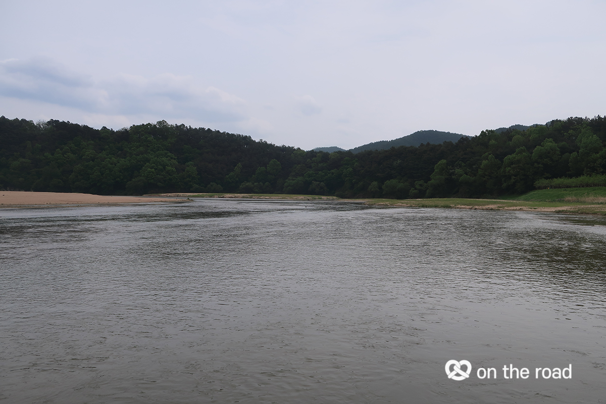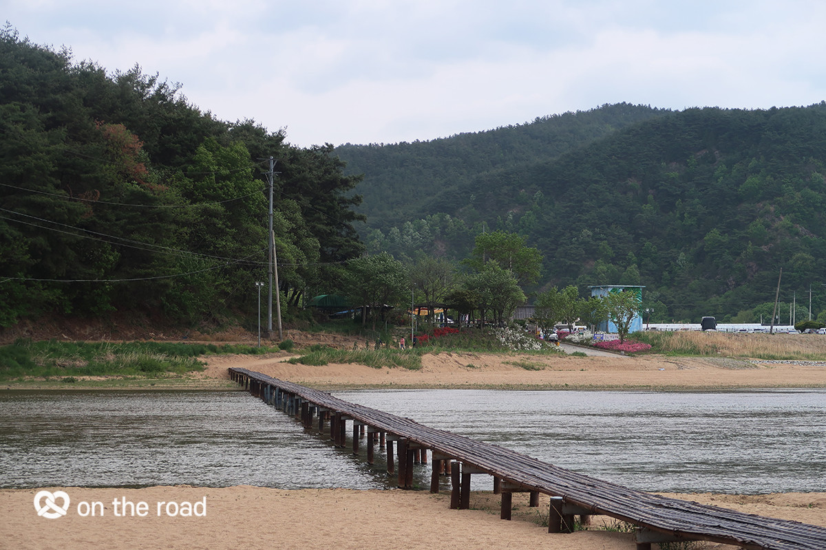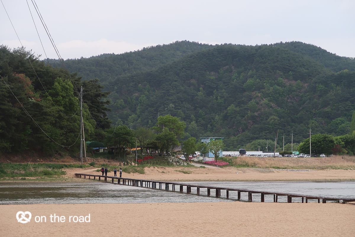 원래는 뿅뿅다리 주차장에 차를 대고 건너올 생각이었는데, 어쩌다 보니 내비에 회룡포마을 주차장을 찍는 바람에 곧장 회룡포마을로 들어오고 말았다. 굽이굽이 좁은 산길을 지나면 회룡포마을로 들어올 수 있다. 오랜만에 들른 회룡포마을에는 커다란 주차장과 멋진 공원이 조성되어 있었다.