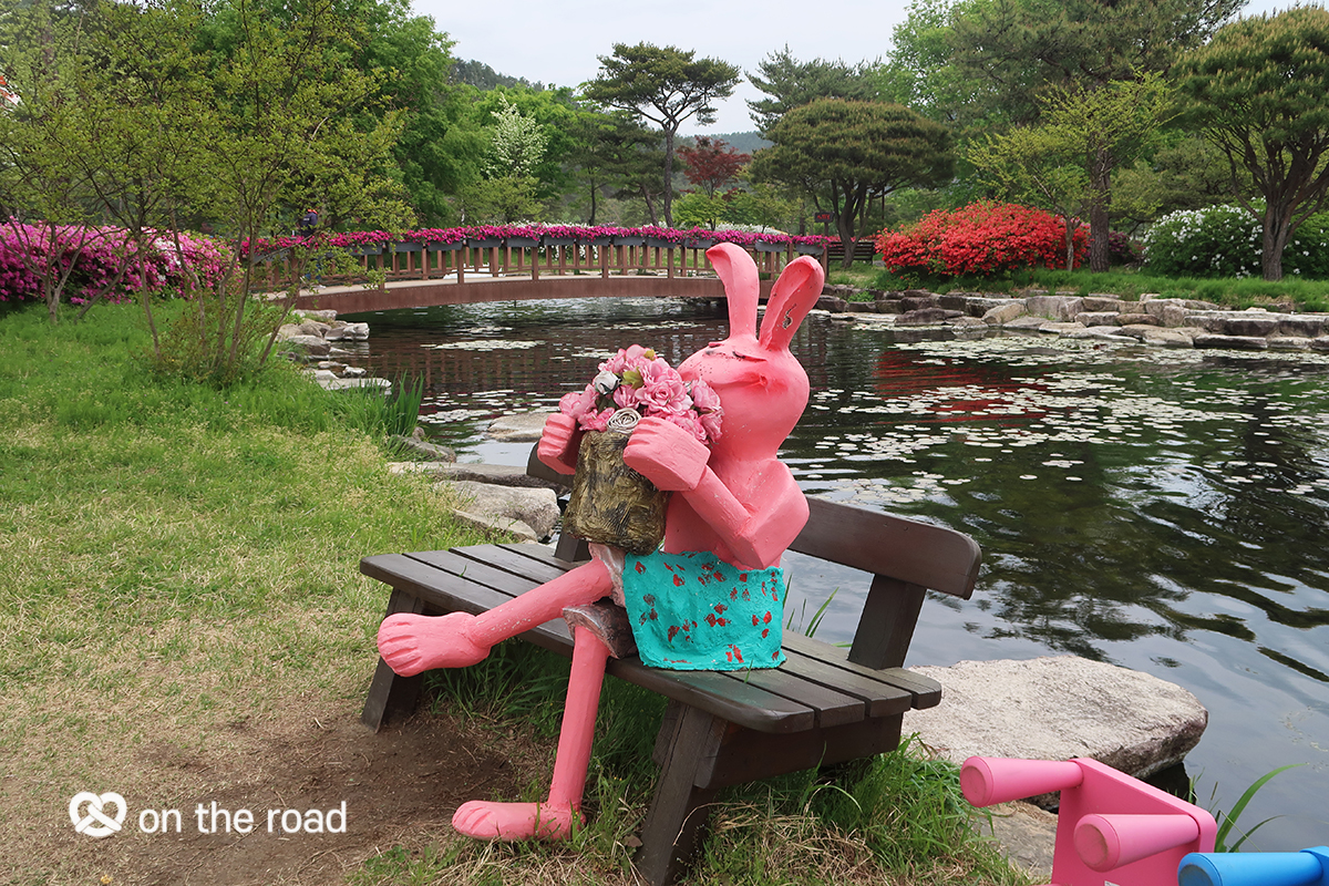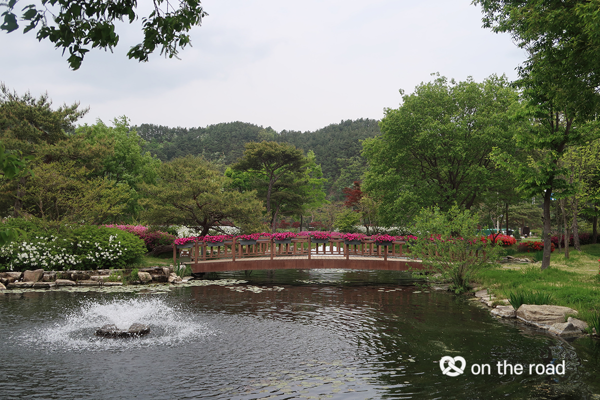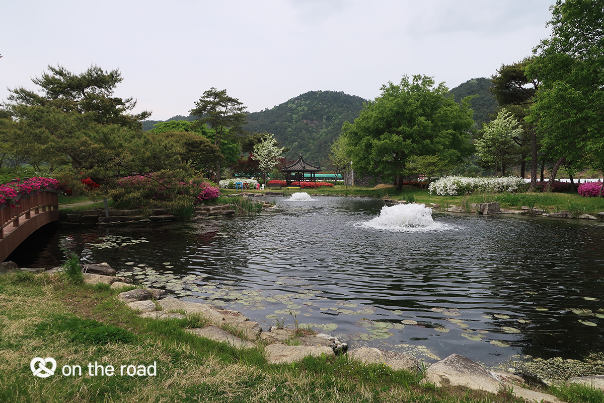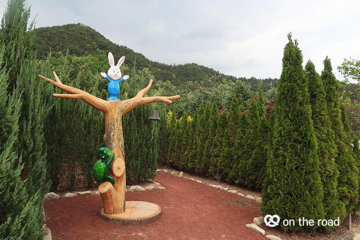 원래는 뿅뿅다리 주차장에 차를 대고 건너올 생각이었는데, 어쩌다 보니 내비에 회룡포마을 주차장을 찍는 바람에 곧장 회룡포마을로 들어오고 말았다. 굽이굽이 좁은 산길을 지나면 회룡포마을로 들어올 수 있다. 오랜만에 들른 회룡포마을에는 커다란 주차장과 멋진 공원이 조성되어 있었다.