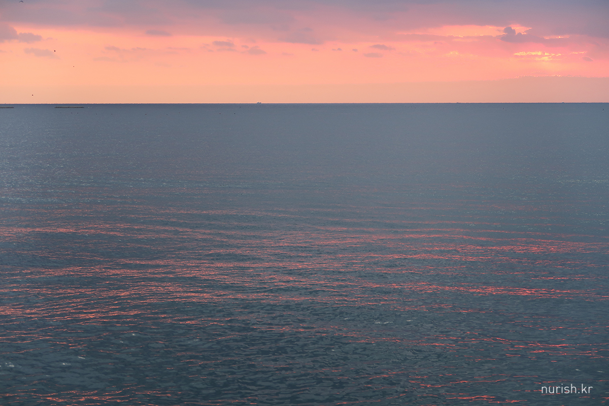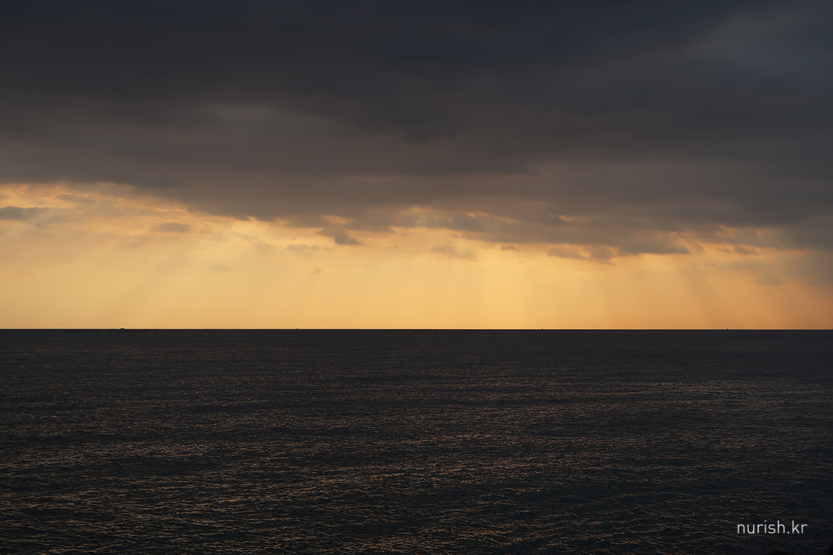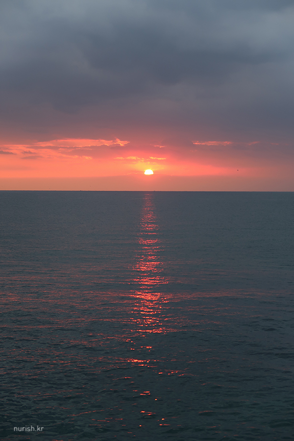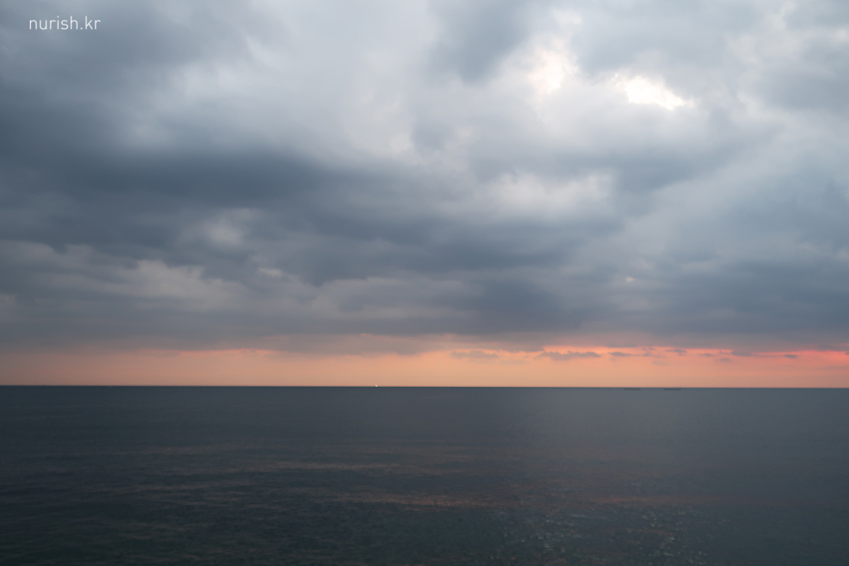 동해에 왔으니 해돋이를 봐야겠다고 시간 맞추어 숙소 앞 바닷가로 나왔는데,구름이 잔뜩 깔렸다.