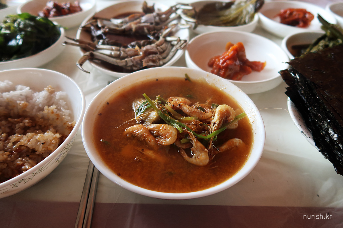참게탕, 이거 진짜 민물 새우가 듬뿍 들어가서인지 국물이 끝내준다 ㅜㅜ 사장님 만수무강하세요, 다시 한 번 외치며..