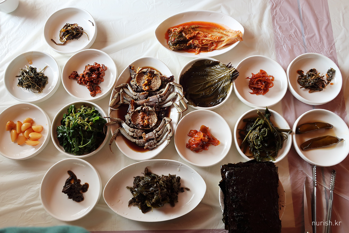 참게장과 사장님의 손맛이 가득 담긴 각종 장아찌 반찬!