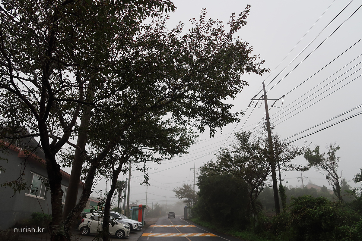 점심 먹기 위해 제주 쪽으로 가려고 고개를 넘는데 앞이 안 보인다 ㅜㅜ 갑자기요?? ㅋㅋㅋㅋㅋ 비상등 켜고 서행 중.