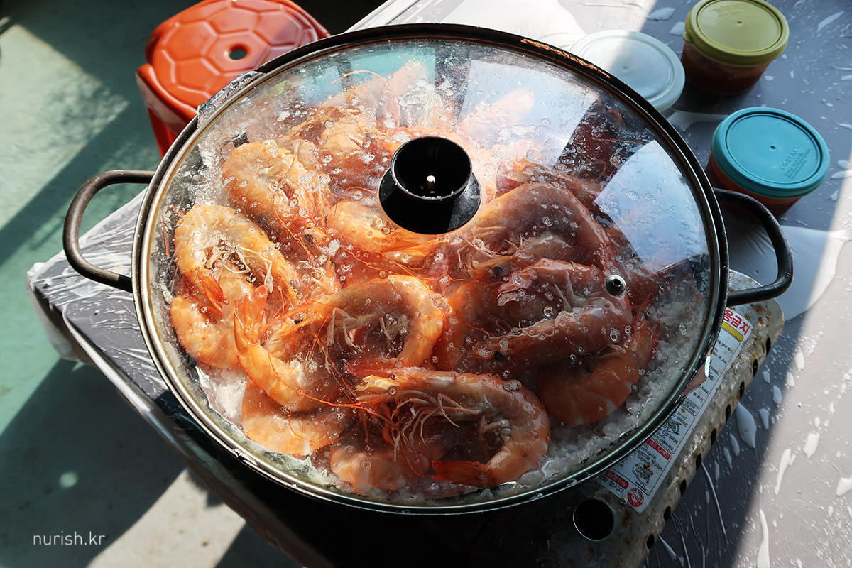 너무 배불러서 새우 머리는 집에 가져와서 저녁에 에어프라이기에 구워 먹었다.