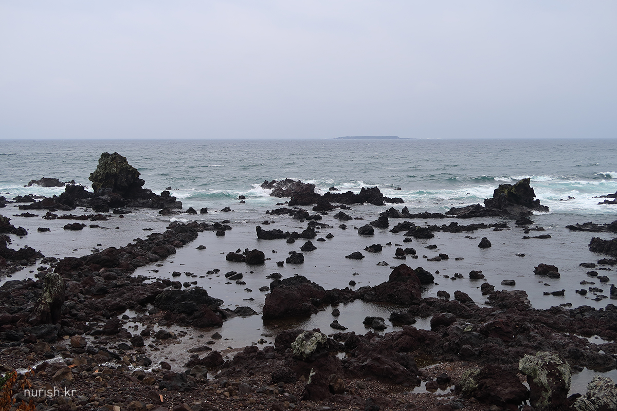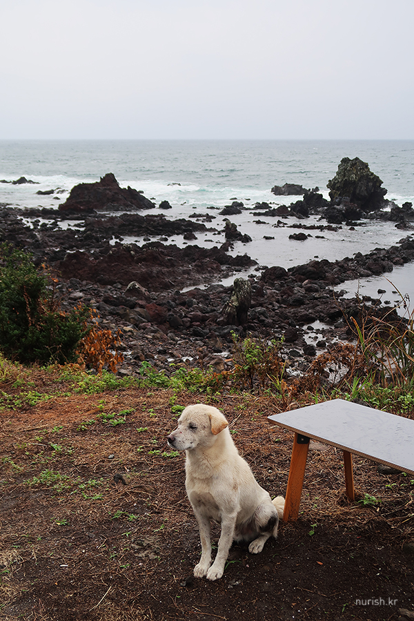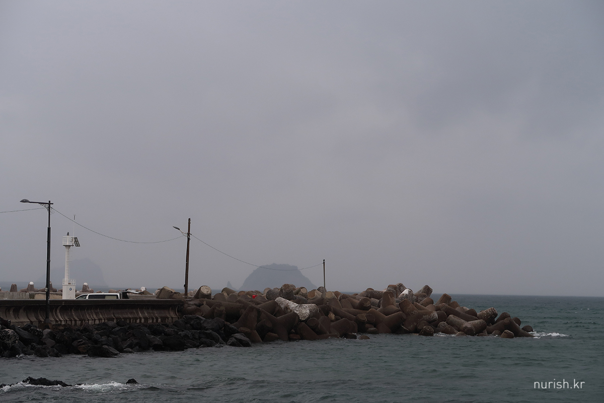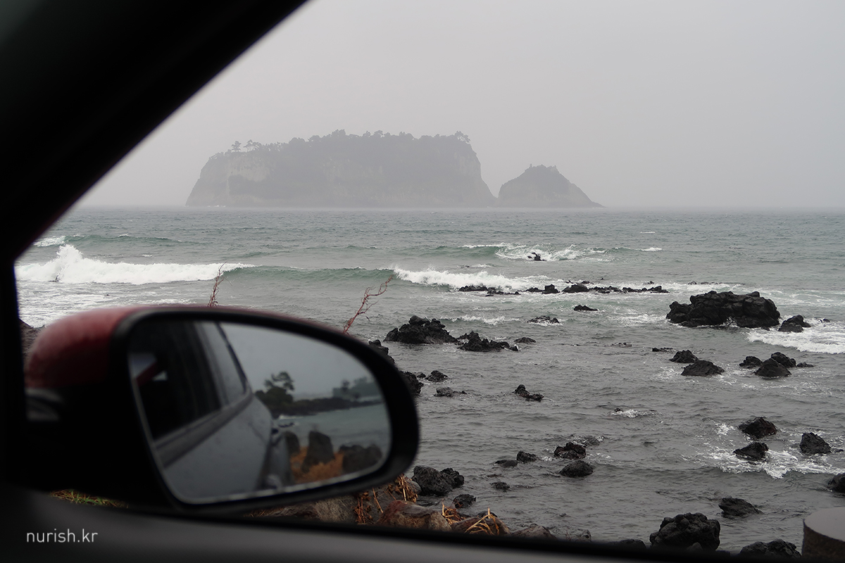 아침 맛있게 먹고 나왔더니 비 쏟아지기 시작 ㅜㅜ 그래도 다행인 건 차를 호텔 지하주차장이 아니고 옆쪽 공영주차장에 댔는데, 그때 비가 안 온 거다. 아주 번거로워질 뻔했다. 잠시 해안가에 차 대놓고 범섬 구경 중