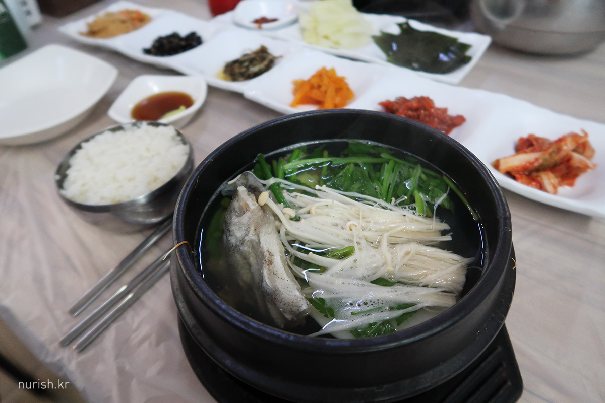 나는 대구탕, 둘 다 맛있는데 이집 대구탕이 정말 찐이다. 들어 있는 대구도 실하고 국물도 칼칼한 게 쌀쌀한 날씨와 잘 어울린다. 아주 만족.