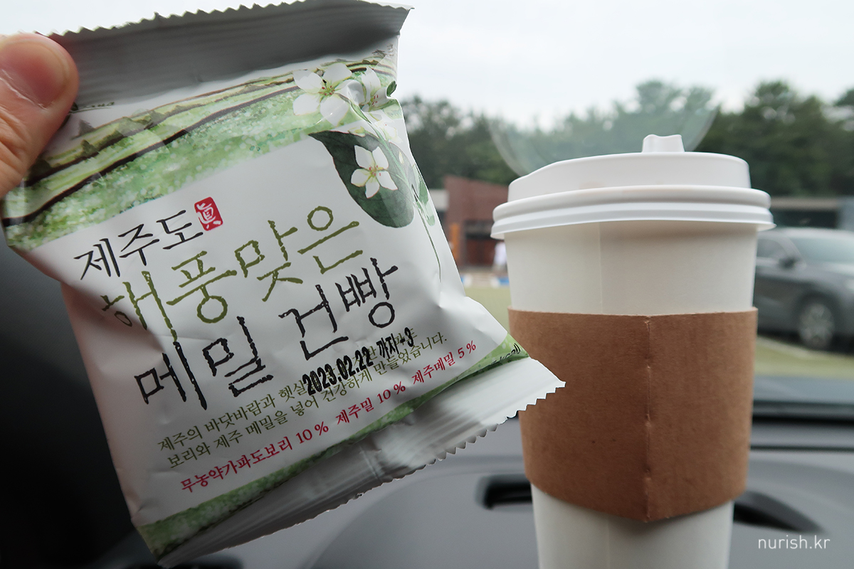 치유의 숲 주차장에 있는 카페에 커피 사러 갔다가 발견한 메밀 건빵. 요거 맛있음.