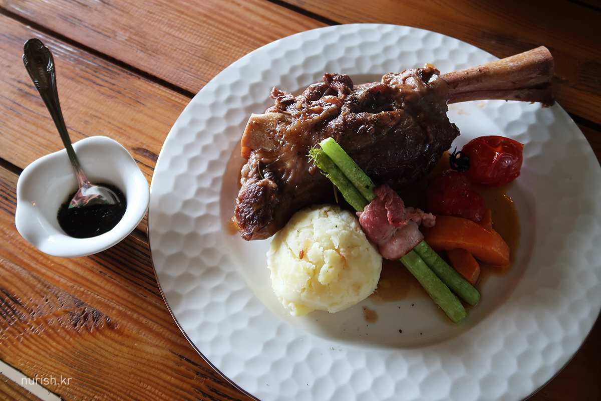 미리 예약해둔 오늘의 메인 요리 "램 샹크" 각종 허브와 향신료로 숙성시킨 양 정강이를 특제소스와 장시간 끓여낸 요리