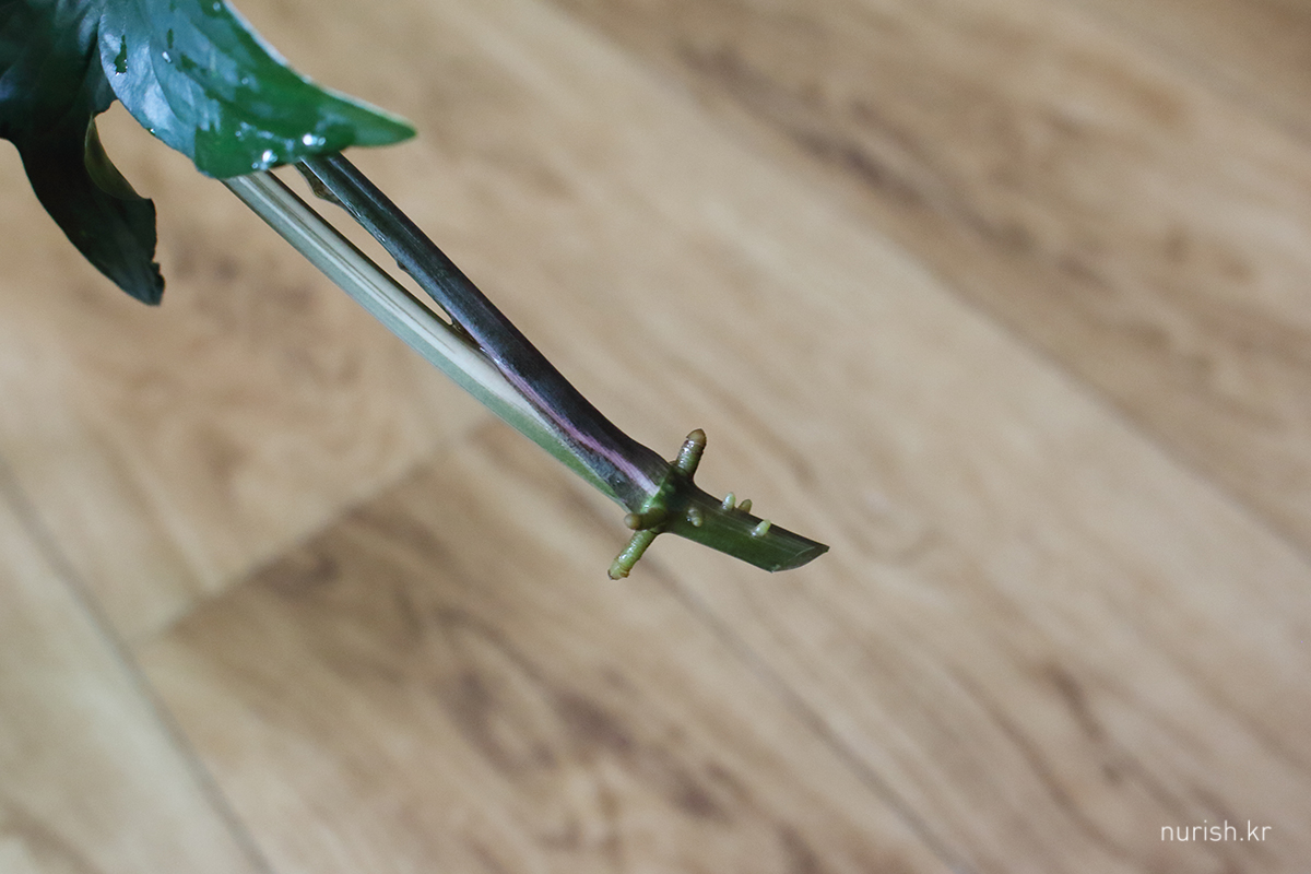 싹둑 ㅋㅋㅋ 지난번보다 한 마디 더 잘라서 화분에 심어져 있는 네 촉의 키를 맞추었다.