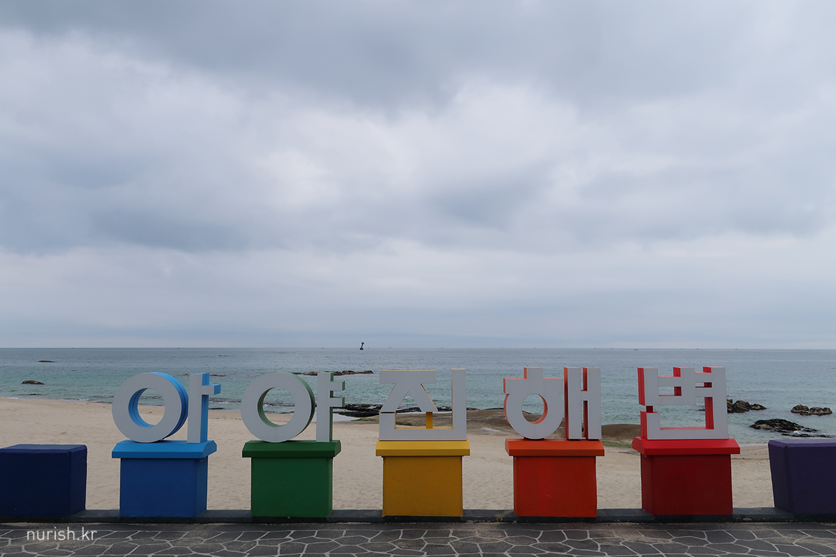 집에서 6시에 출발했더니, 신월여의지하도로로 들어가서 올림픽 대로 타고 양양 고속도로로 이어지는 강일 IC까지 약 30분만에 통과한 것 같은 기적을 경험했다. 델피노 가서 방배정 번호 표 뽑고 첫 번째 목적지인 아야진 해변 도착. 아침 겸 점심 먹을 식당 영업 시작까지 시간이 조금 남아서 바닷가 산책했다.