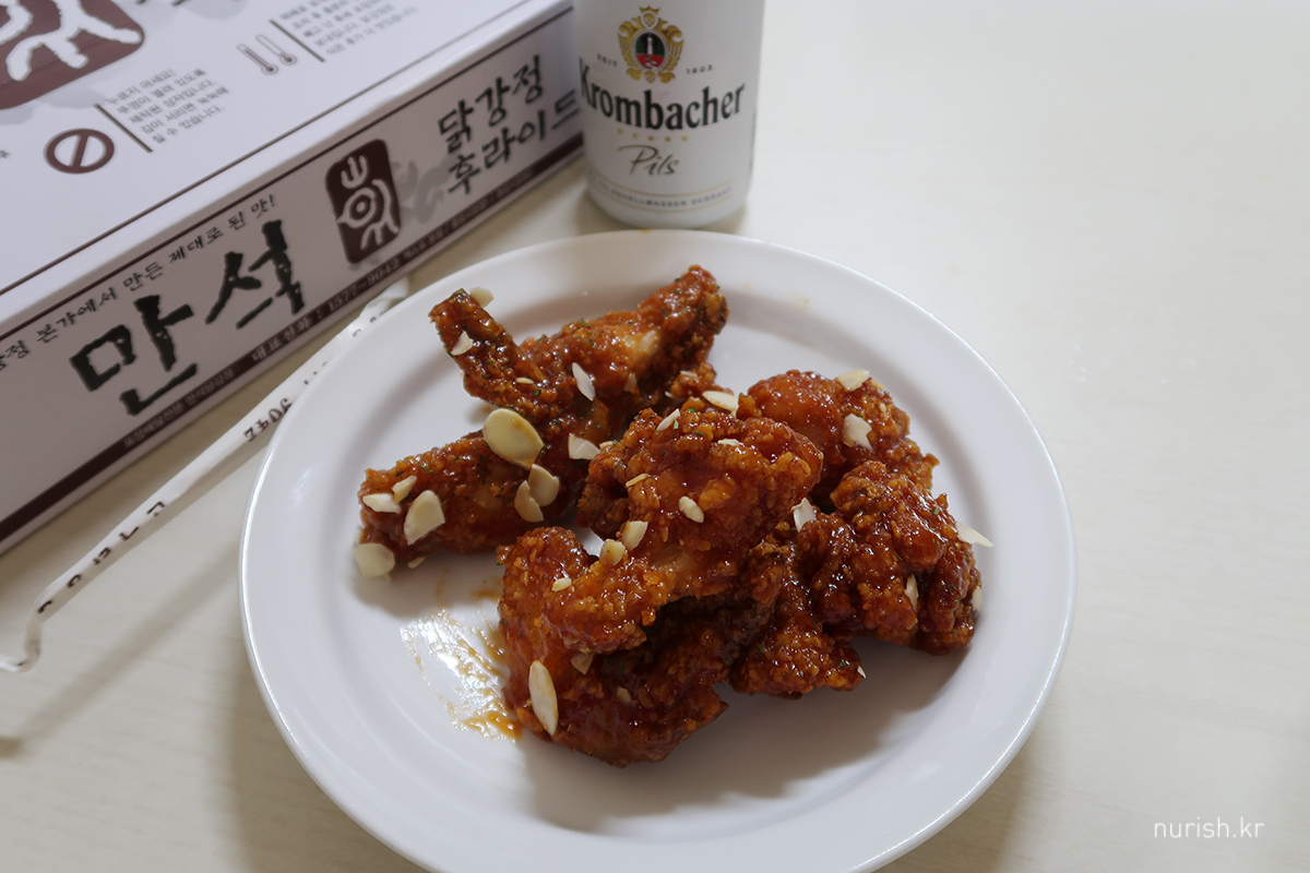 야식으로 만석닭강정 ㅋㅋ 저번에 순살 별로여서 뼈로 샀는데 역시 뼈가 낫다. ㅋㅋ