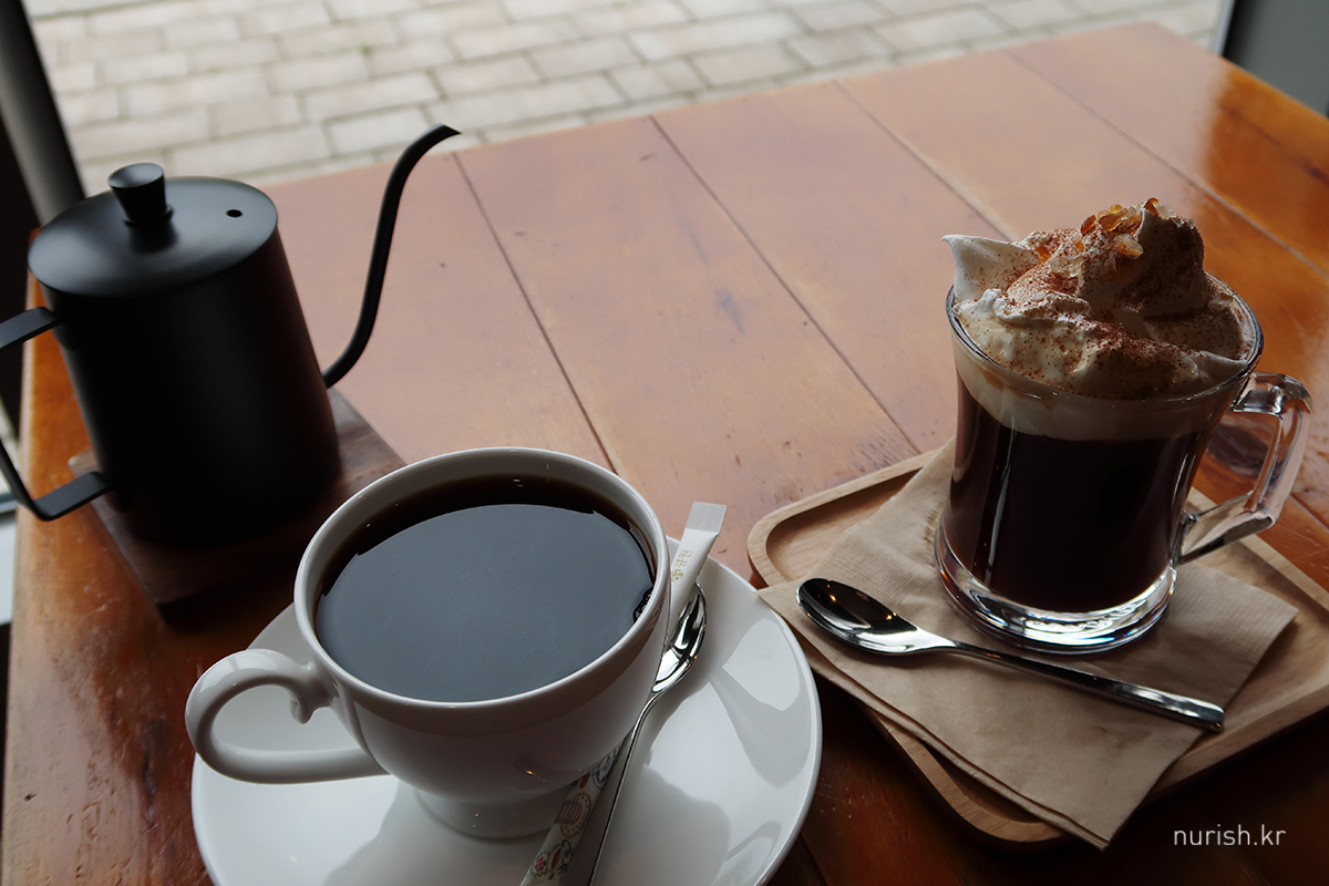 12시에 체크인하고 소노펠리체 더 엠브로시아에서 커피 마시려고 했는데, 궂은 날씨 때문에 울산바위가 하나도 보이지 않아서 ㅜㅜ 영랑호로 왔다. 울산바위 뷰와 커피 한 잔은 아쉽지만, 영랑호에서 아주 마음에 드는 카페 발견!
