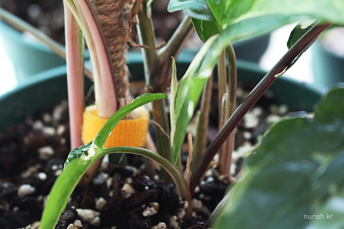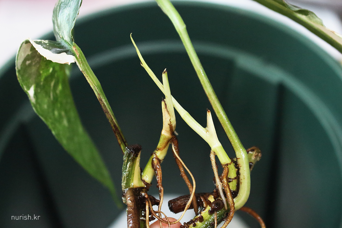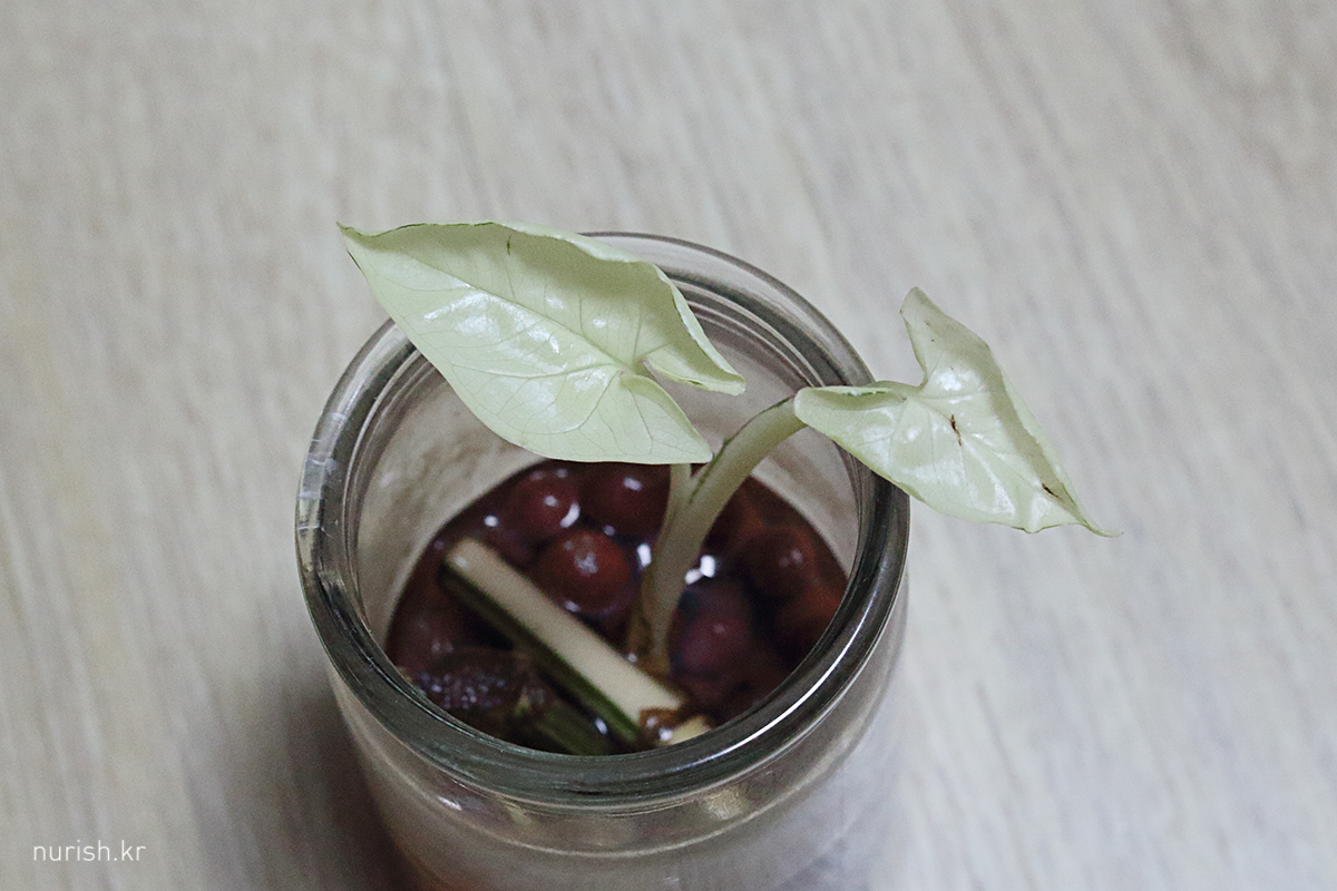 극강의 생명력! 두 번째 새잎도 예쁘게 펴졌다. 초록은 스쳐 지나갔을 뿐. 어째 뿌리 잘 나고 초록 많이 묻은 삽수보다 속도가 빠른 것 같은? ㅋㅋㅋㅋㅋ 고스트 싱고