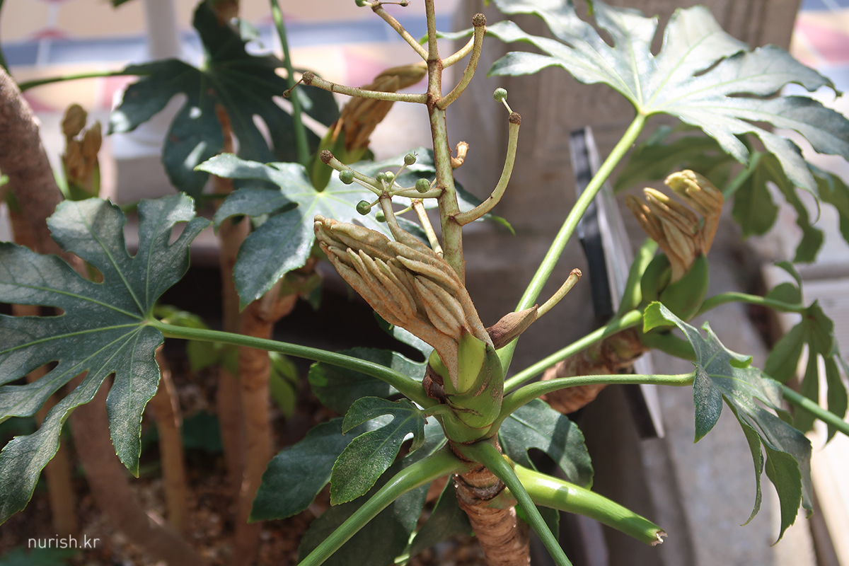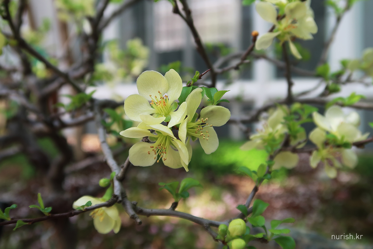 맞은편에 있는 작은 나무는 꽃봉오리 조금씩 열리는 중