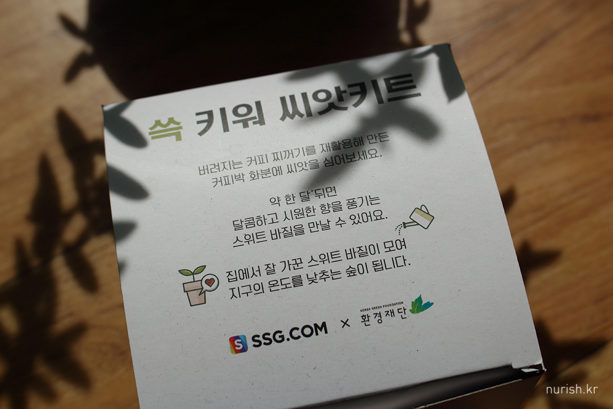예전에 쓱에서 한 이벤트에 당첨되어서 받은 쓱 키워 씨앗키트 - 스위트 바질.