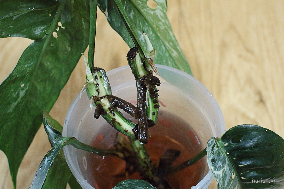 에피바리 삽수 뿌리 성장세가 생각보다 느린데, 새순에서 새 뿌리 나는 거 보면 기특하고 신기하다.