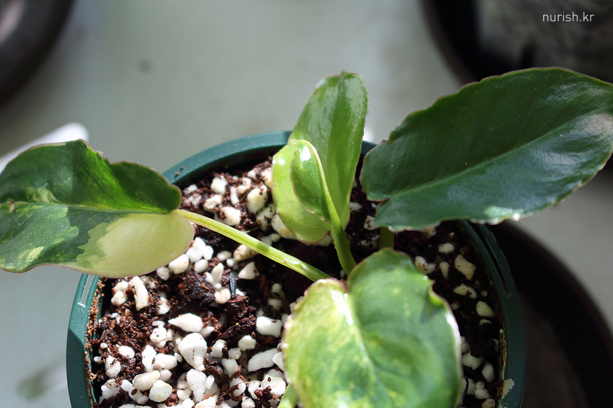 새잎 예쁘게 펼쳐진 무싱이 바텀! 이젠 초록이 많아도 그러려니 ㅋㅋ 흰 지분 녹아서 못생겨지는 것보다는 초록이 낫다. ㅠㅠ 그래도 다음 잎은 산반무늬 더 많이 묻히고 나와주면 좋겠지만 말이다. ㅋㅋㅋ