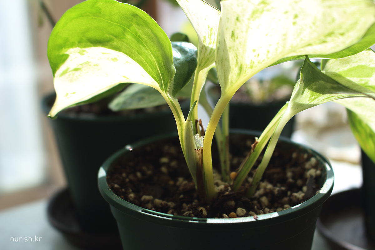 새잎 예쁘게 펼쳐진 무싱이 바텀! 이젠 초록이 많아도 그러려니 ㅋㅋ 흰 지분 녹아서 못생겨지는 것보다는 초록이 낫다. ㅠㅠ 그래도 다음 잎은 산반무늬 더 많이 묻히고 나와주면 좋겠지만 말이다. ㅋㅋㅋ