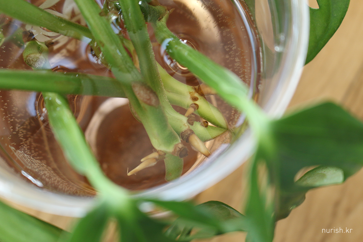 핳하하ㅏㅏ하하ㅏ핳... 하늘로 향하던 뿌리가 물 밖으로 나오려고 하기에 살살 방향 틀다가 분질러 먹었다. ㅠㅠ 뿌리 받기 리셋 ㅠㅠ