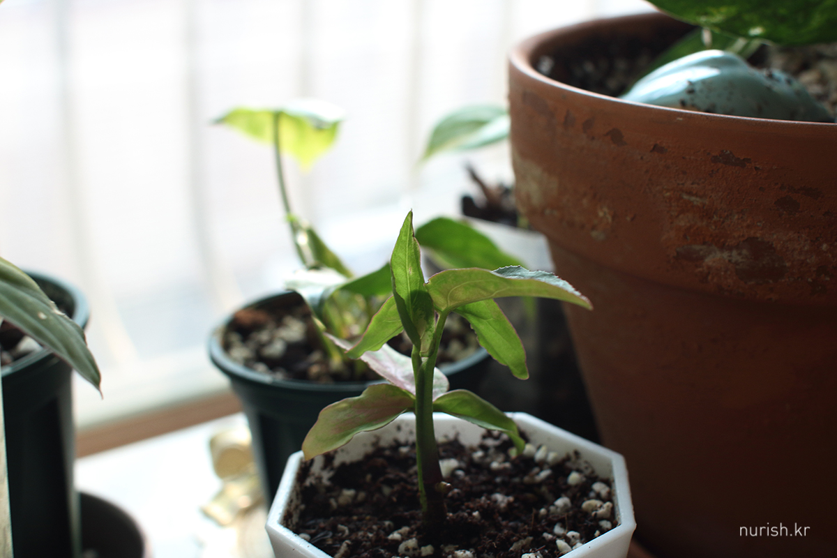 흙으로 가도 좋을 것 같았는데, 흙 쪽에 '진딧물'로 추정되는 벌레 문제가 발생해서 당분간 더 물생활.
