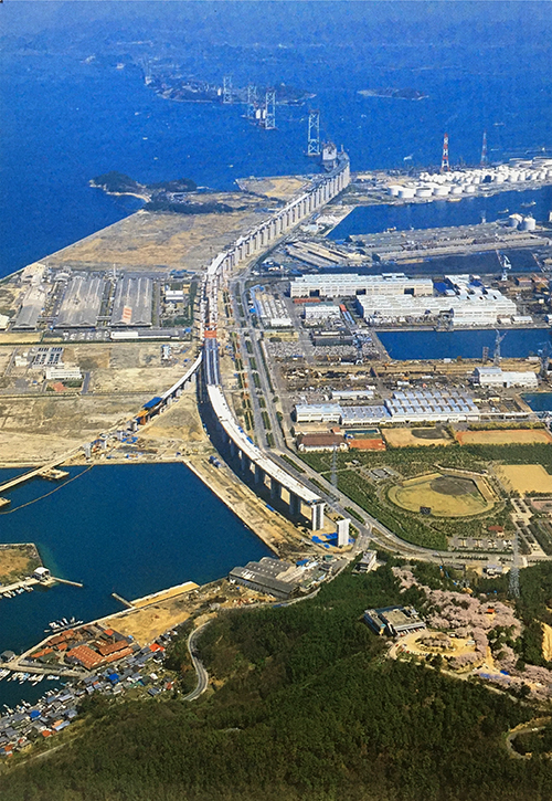 시코쿠(四国)에서 바라보는 세토(瀬戸) 대교 풍광 엽서. 세토 대교는 시코쿠 지방과 혼슈(本州) 지방을 잇는 다리이다.
