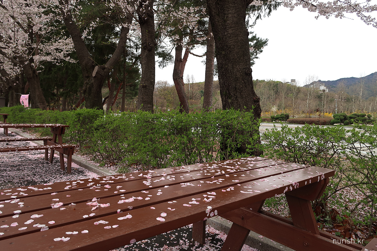 아침에 비가 그치는 것 같아서 저수지 둘레길 한 바퀴 걸으러 드라이브했다. 서울대공원에 오면 과천저수지 둘레길을 따라 쭉 산책할 수 있다. 어제 하루종일 비가 내린 탓인지 꽃잎이 잔뜩 떨어졌다. 찰나라 아쉬운 봄.